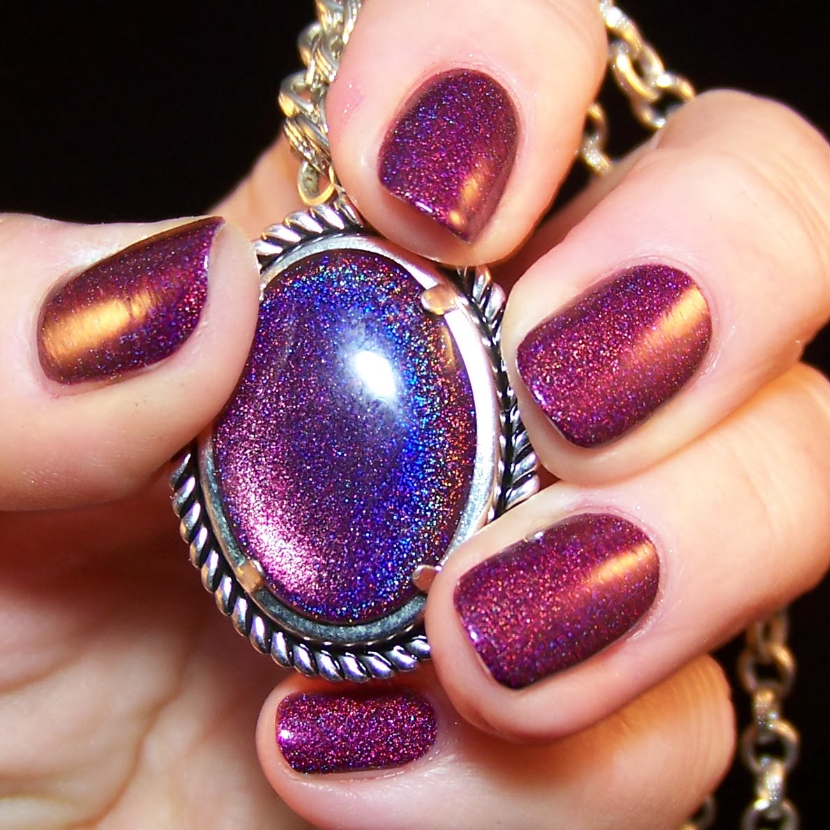 It is a beautiful polish, but it doesn't measure up to True Blood (on the pendant in one of the photos). Still it aboslutely has its place in my Helmer, and on my nails now and then.